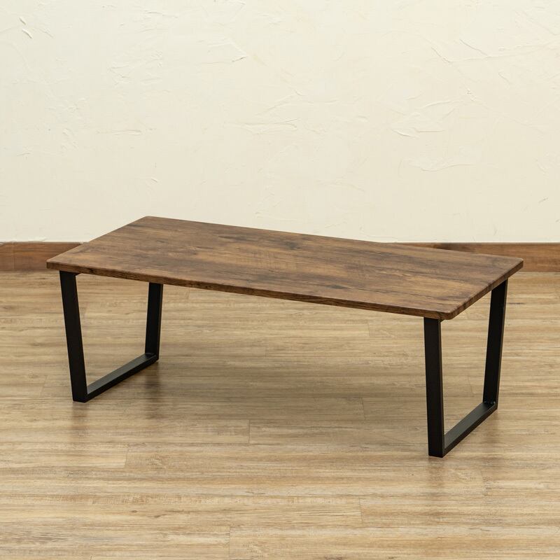 木目調天板とスチール脚の組み合わせの落ち着いたアンティーク調のテーブルです