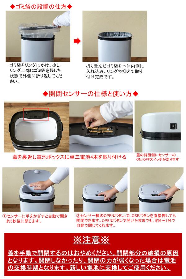 かざした手をセンサーが感知して、手を近づけるだけで上蓋が開閉します