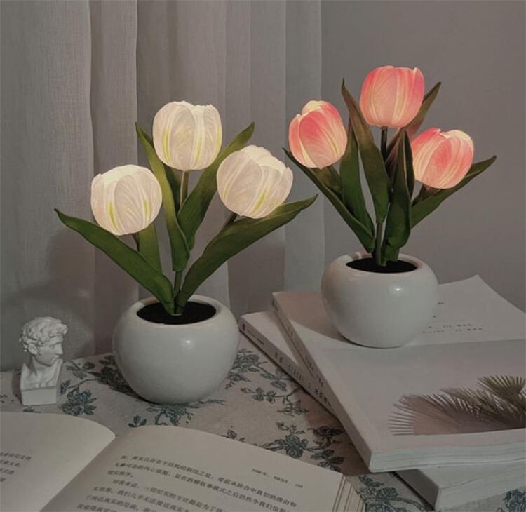 常夜灯 LED チューリップ デコレーション アンビエントライト テーブルランプ イミテーションブーケ