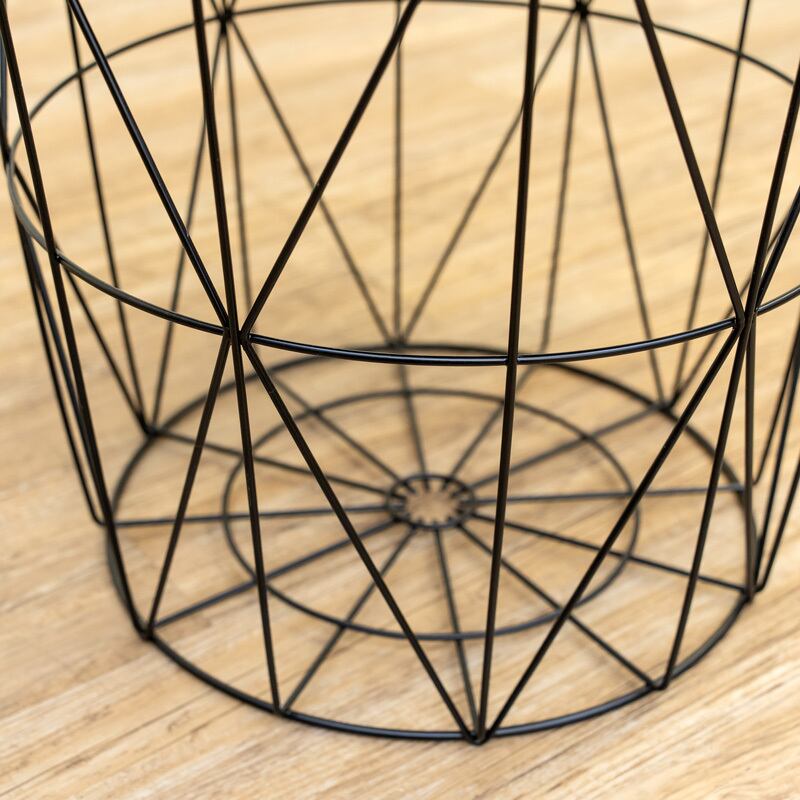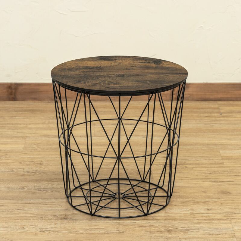 天板下は収納出来る、スチール製のバスケットテーブルです
