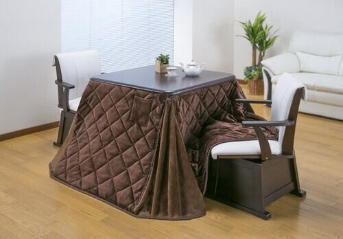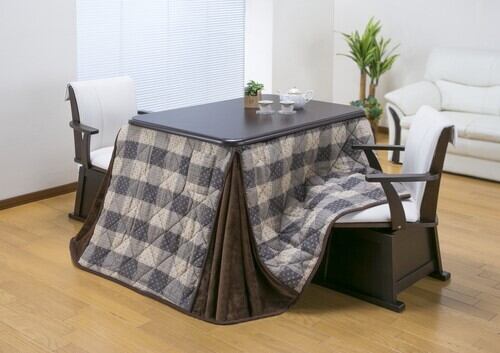 ●素材/[こたつ]フレーム・脚:ラバーウッド材、天板:MD転写、[布団]表地/しじら折り:綿100%、フランネル:ポリエステル100%、中綿:ポリエステル100%、コーナー部:ポリエステル100%、[チェア]フレーム:天然木ラバーウッド材、座面:PVC・ウレタンフォーム
