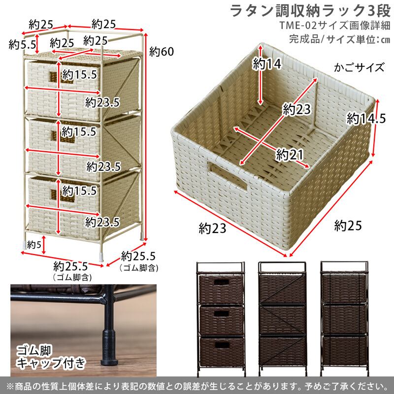 ラタン調 収納ラック 3段 BR/IV/CM/GY