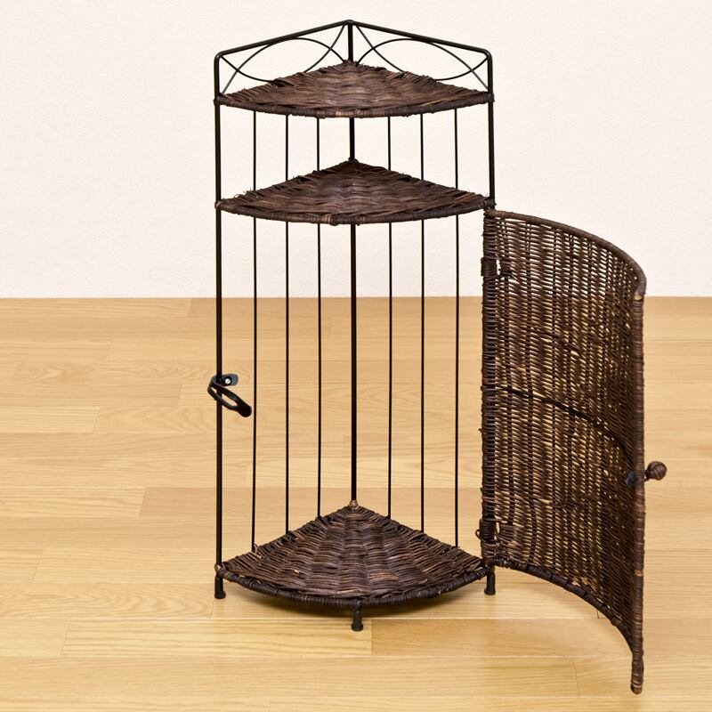 ラタンコーナーラック 2段 BR/WH