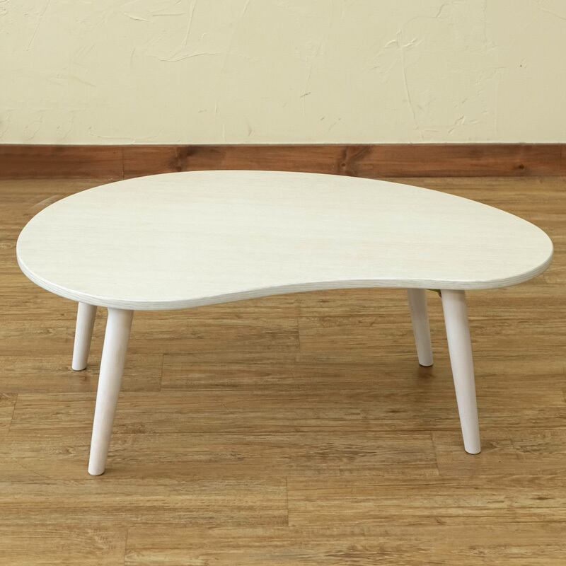 天板は豆みたいな形の可愛いテーブルです