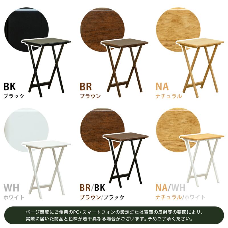 ブラック(BK)、ブラウン(BR)、ナチュラル(NA)、ホワイト(WH)、ブラウンブラック(BRBK)天板ブラウン脚ブラック、ナチュラルホワイト(NAWH)天板ナチュラル脚ホワイトの6色展開です