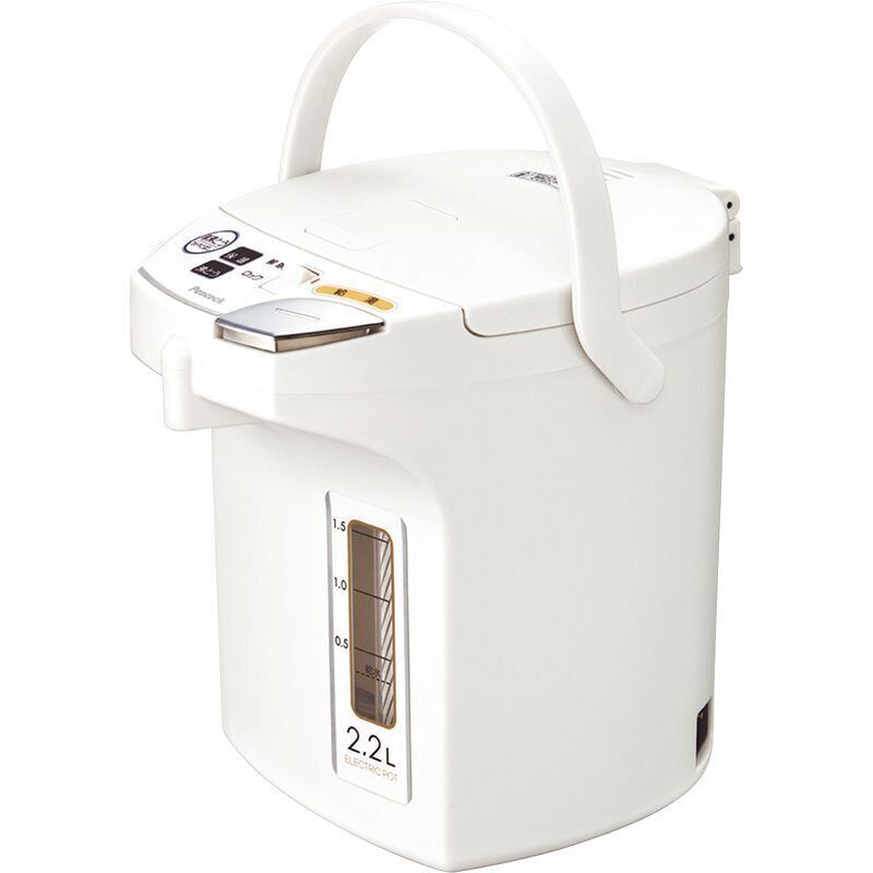 注ぎ口が手前に出ているから、お湯の出口が見えやすい。注ぎこぼしややけどを防ぐ安心設計。大きな給湯ボタンは一目でわかりやすく、押しやすい。・空焚き防止・上蓋着脱式・360℃回転式・再沸とう機能・カルキとばし・マグネット式プラグ