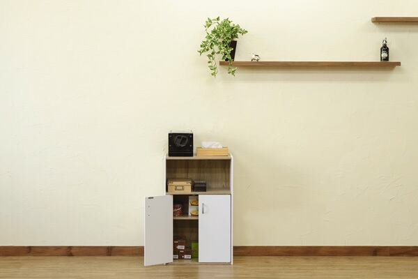 扉内部には可動棚1枚付属します(5段階調節、約3cmピッチ)