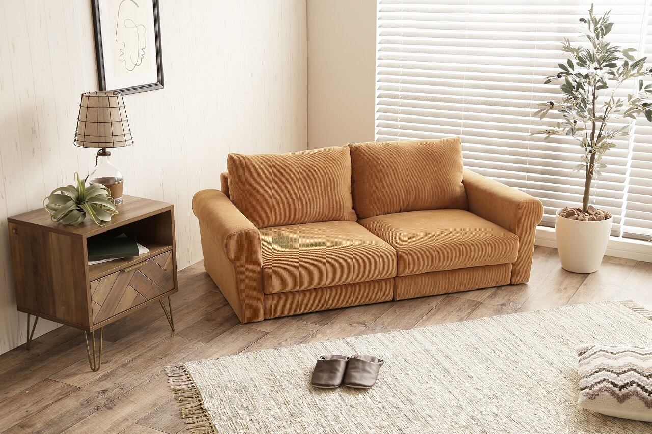 肌ざわりが良く暖かみを感じさせるコーデュロイソファ